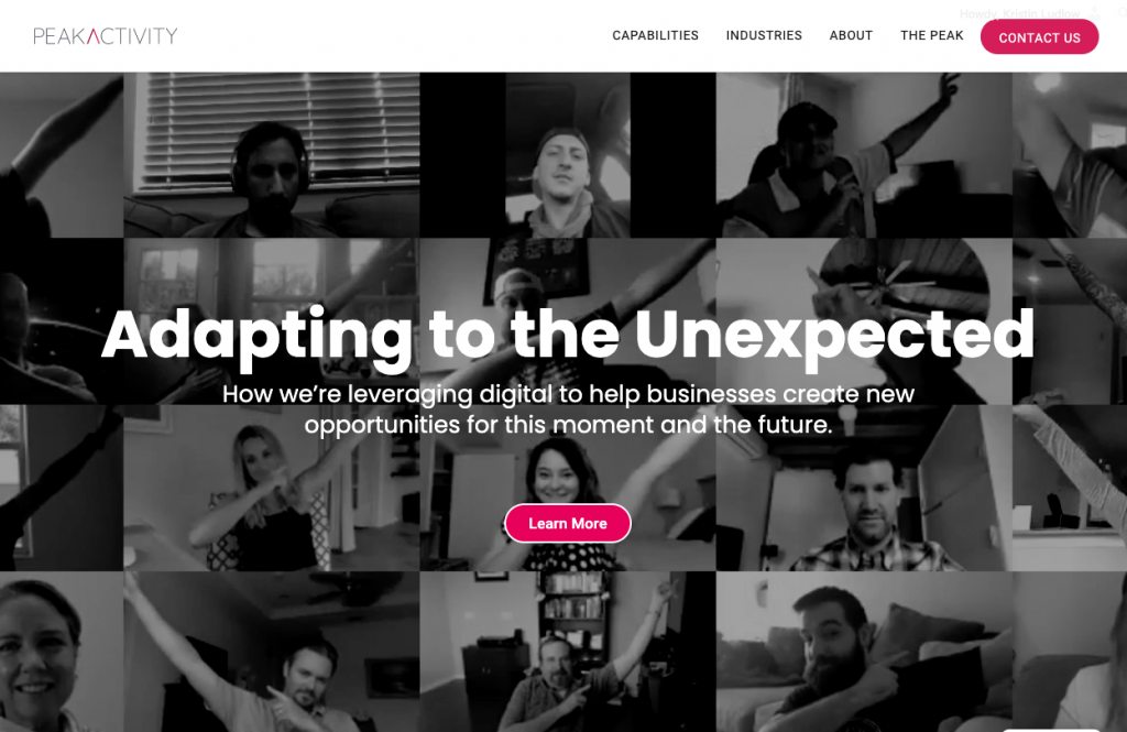 A tiled image showing the Peak Activity team on their homepage